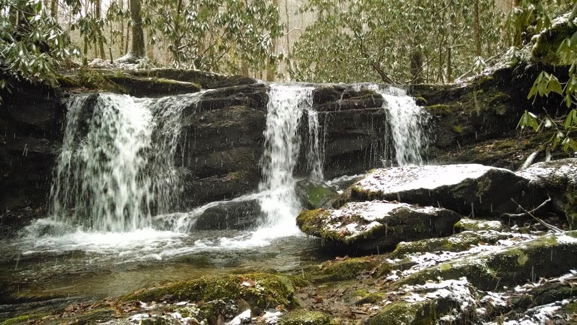 At the .7 mile mark on this trail, just after crossing a small creek, there is a chimney fall with foundation on the left. Among the debris here is an old iron kettle. This is also our spot to leave the old road and just head up Cedar Rock. It is a short climb. Today, it was icy and the two of us with Katoolah Microspikes had a definite advantage. Above is the scene from the top. It is quite different from any other Uwharrie spot. We could clearly see Mt Shepherd today.